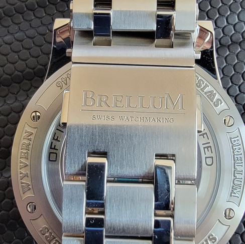 The back of the watch really shines with the brushing being smooth and fine just like the case. It is important to note that the outside engravings are actually smooth from being covered with a thin lacquer so its more comfortable when sitting on the wrist. The custom rotor has Brellum's Wyvern on it witch is nice to see this here and not on the dial or elsewhere.